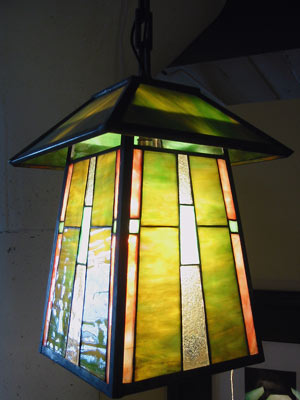Lighting: Other Lighting Superb Prairie School / Wright Style Entryway Hanging Lamp This circa 1905 Prairie School leaded