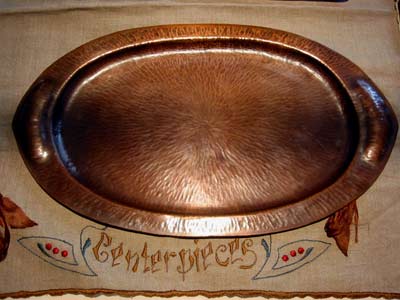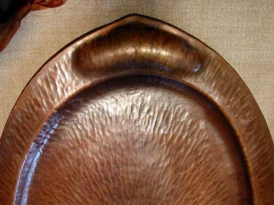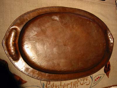 copper tray. Heavy gauge copper, with exquisite radially hammered center,