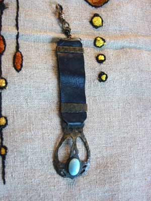 Metalwork: Other Makers Arts & Crafts Watch Fob with Turquoise Cabachon Outstanding Arts & Crafts leather