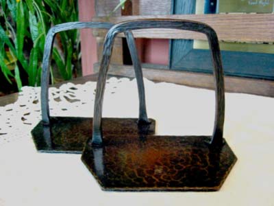 Metalwork: Roycroft Early Roycroft Stirrup Bookends Signed conspicuously on the top surface