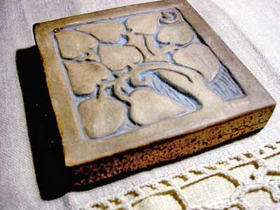 Pottery: Tiles Batchelder Tree of Life Tile Heavy and deeply incised Batchelder