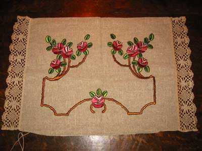 Rennie Mackintosh's famous rose motif. The tatting on the edges completes