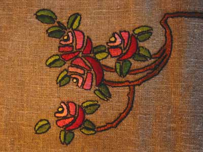 Textiles: Linens Mackintosh Rose Pattern Hand-Embroidered Pillow Cover This piece was lovingly hand made